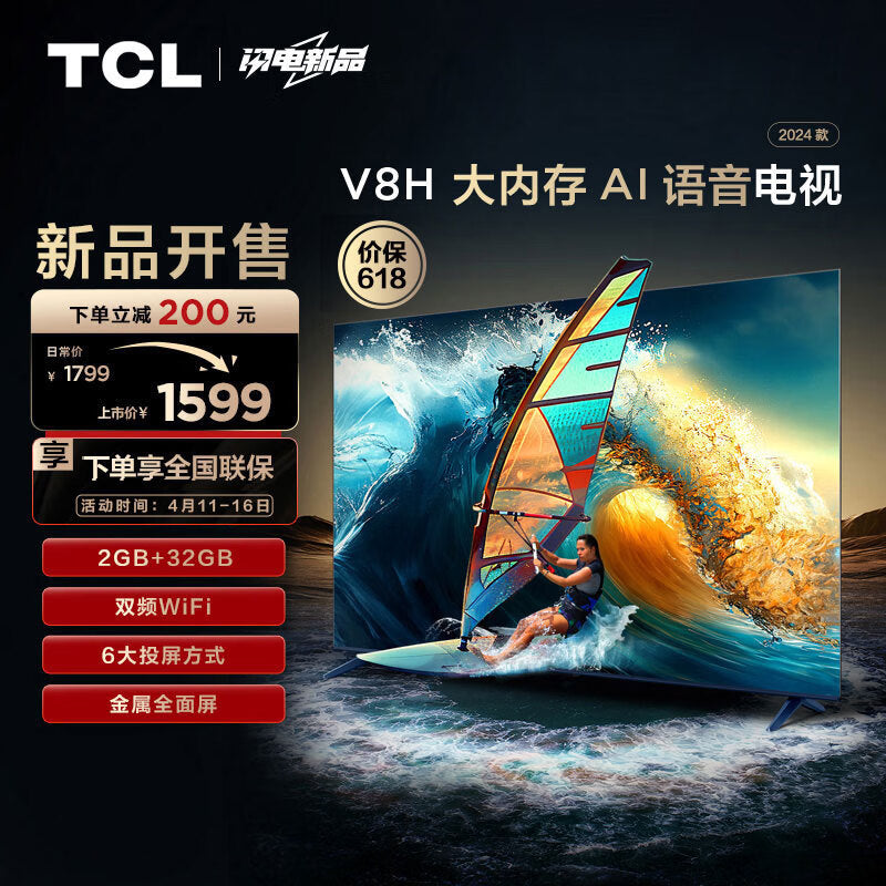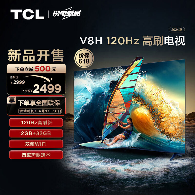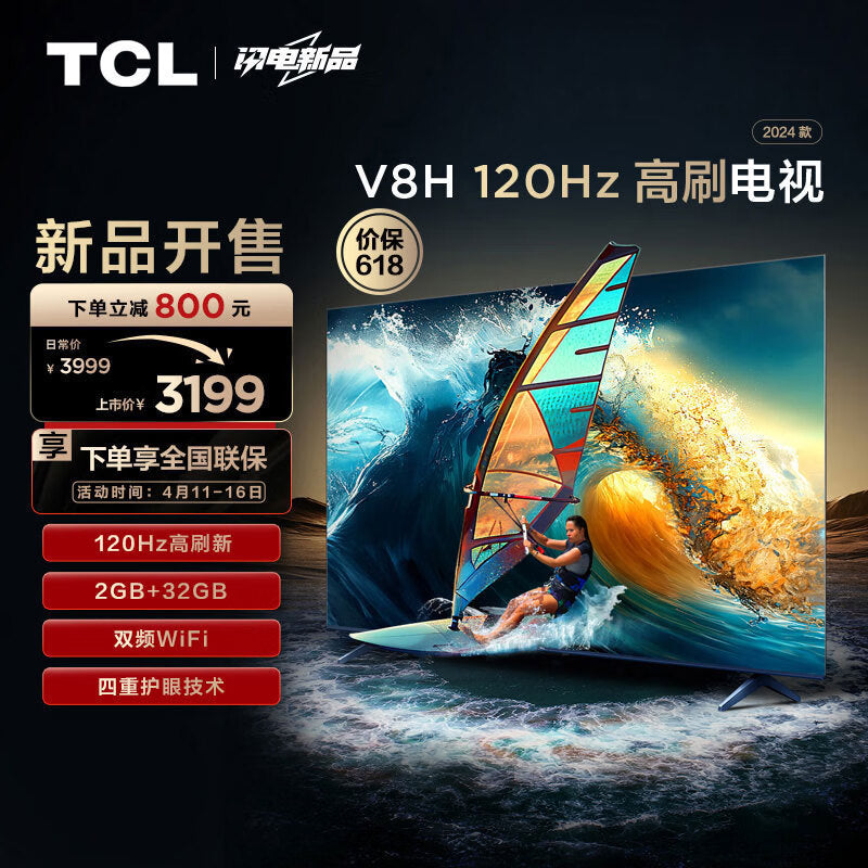 TCL TV 55v8h 55-Inch 120Hz MEMC 2 + 32gb Large Memory Eye Protection 4K Ultra HD Living Room Home LCD Smart Flat Panel TV