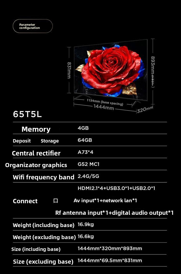 TCL TV 65T5L 65inch 288Hz High Refresh QLED Quantum Dot Smart Control System Ultra-thin TV