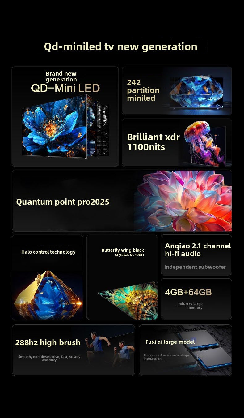 TCL TV 65T6 65inch QD-Mini LED Full Spectrum Quantum Dot Vivid XDR 1100