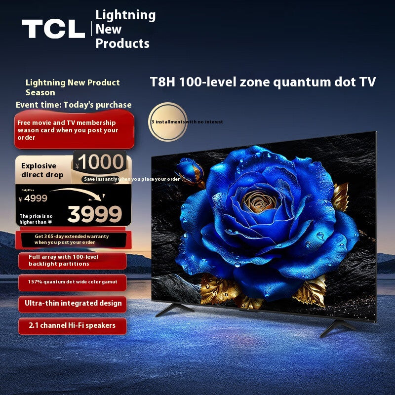 TCL TV 65t8h 65-Inch 100-Level Partition QLED Quantum Dot Ultra-Thin 2.1 Channel Audio 120Hz Living Room LCD Smart Tablet Game TV