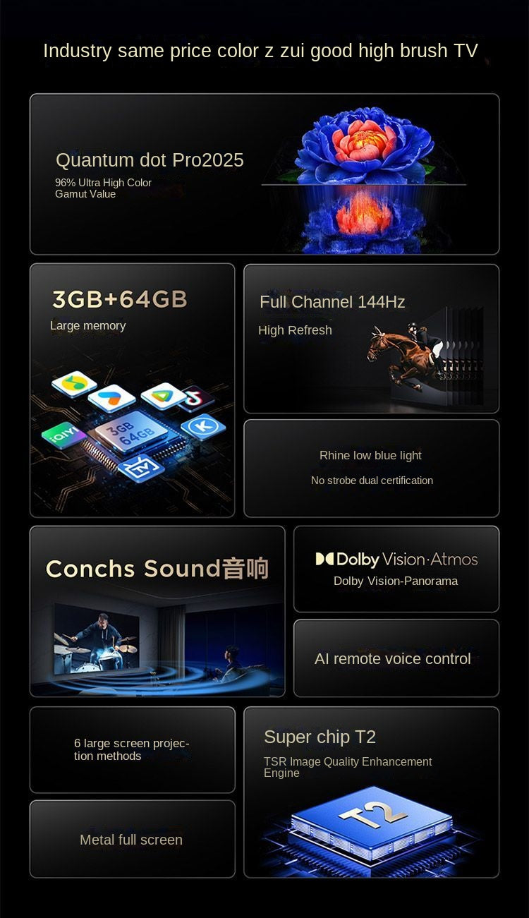 TCL TV 75V8L Pro 75inch 144Hz QLED Quantum Dot 3GB+64GB Large Memory TV