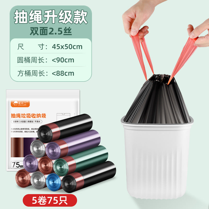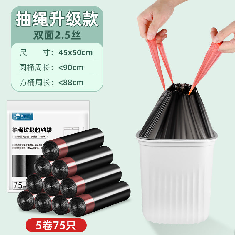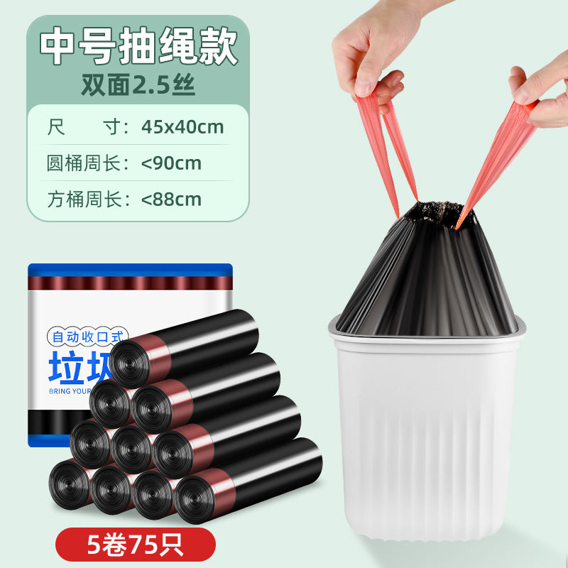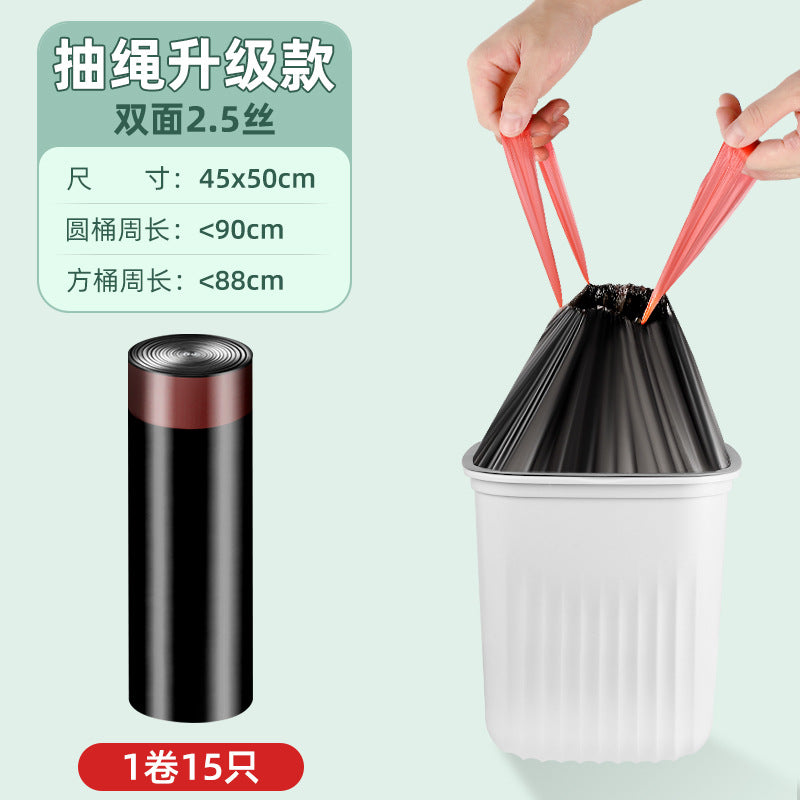 Thickened Drawstring Garbage Bag Disposable Household Kitchen Hotel Vest Garbage Bag Black Plastic Bag Commercial Use