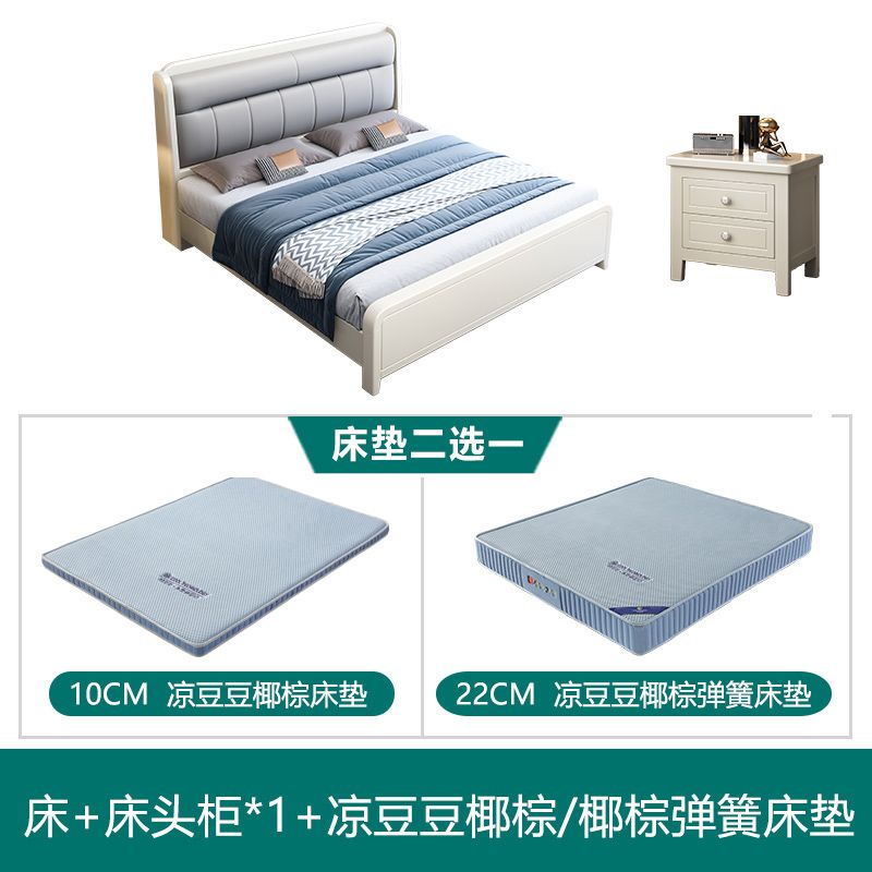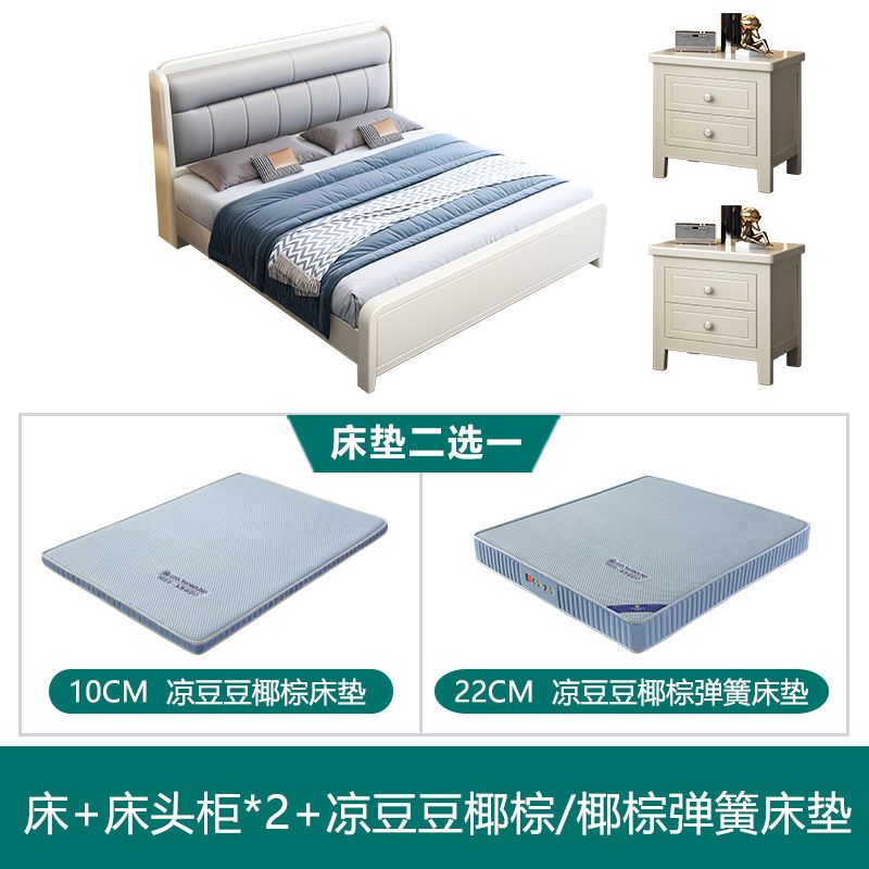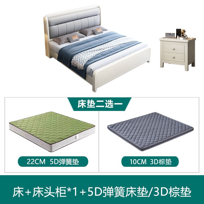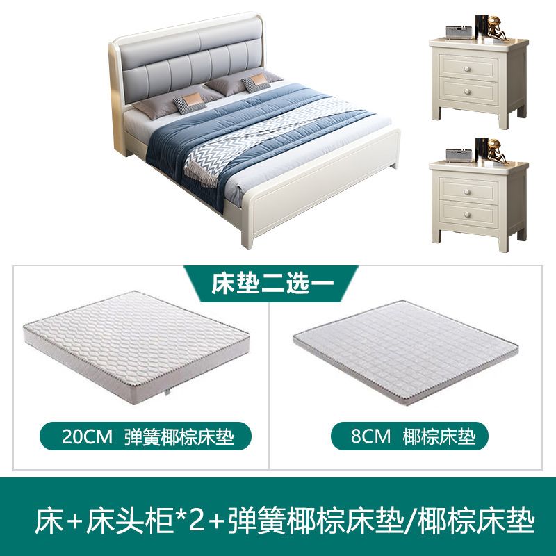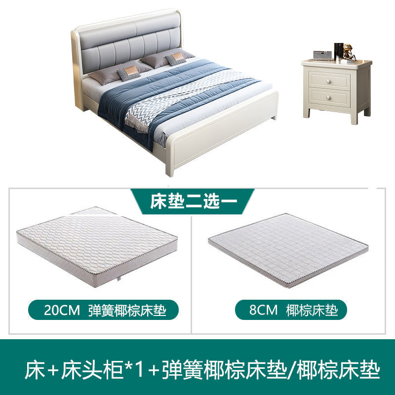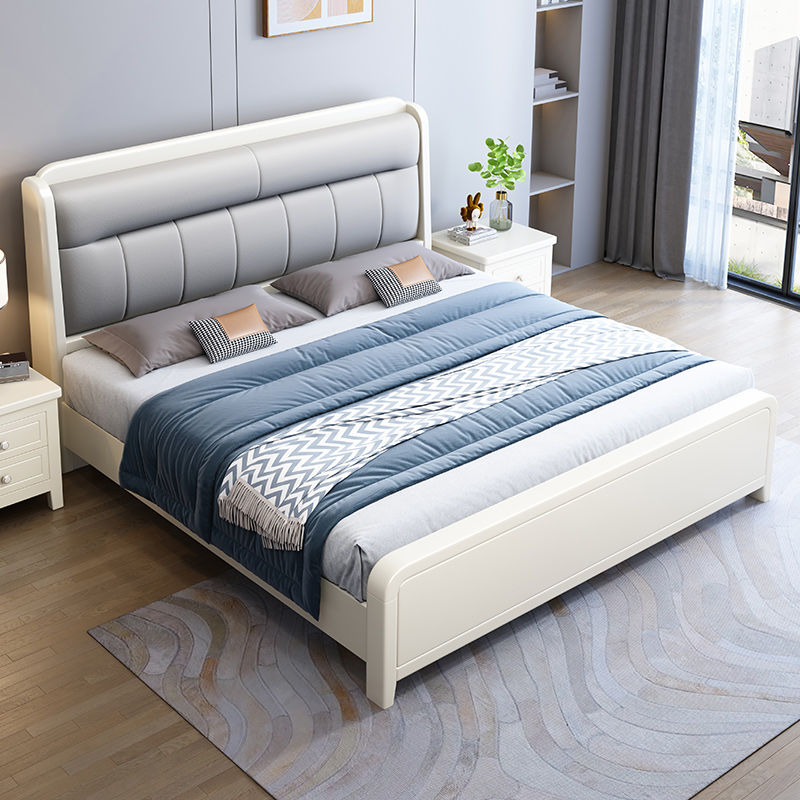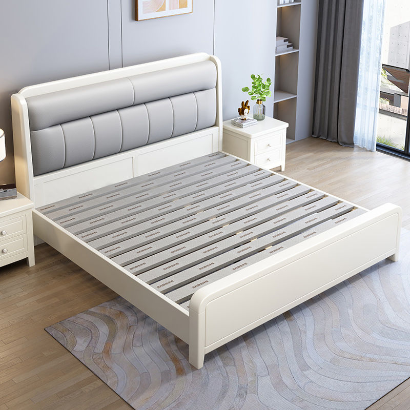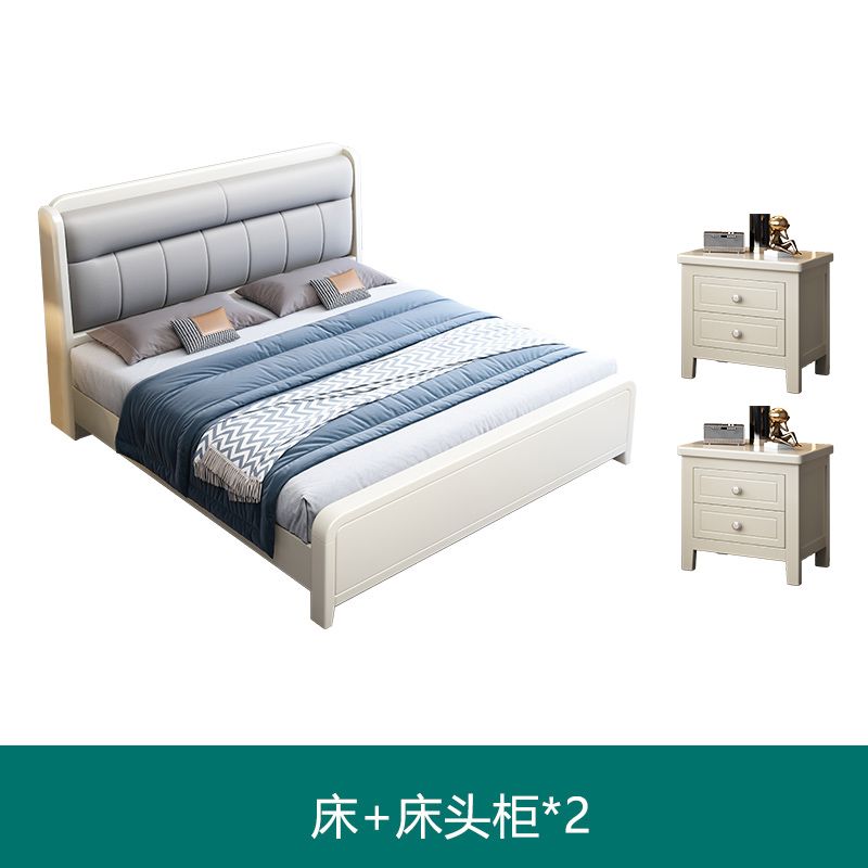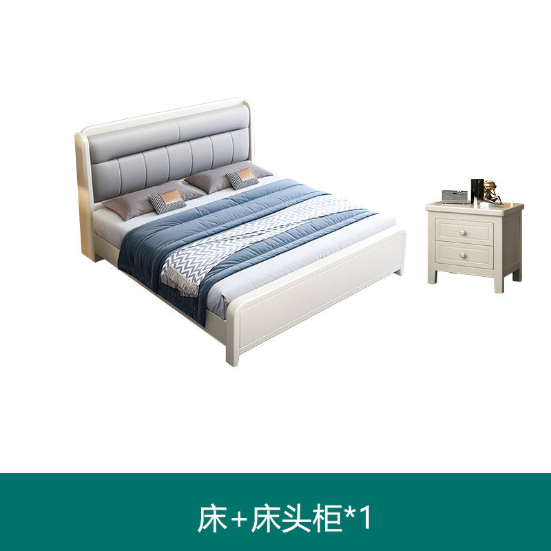 White Cream Style Solid Wood Bed Pastoral Style Modern Simple 1.5 M Small Apartment Double Bed Master Bedroom 1.8 M Big Bed