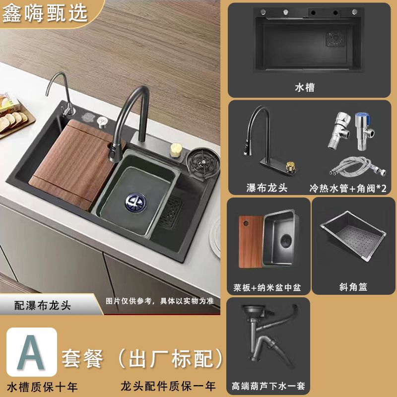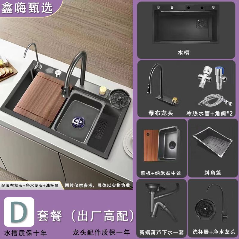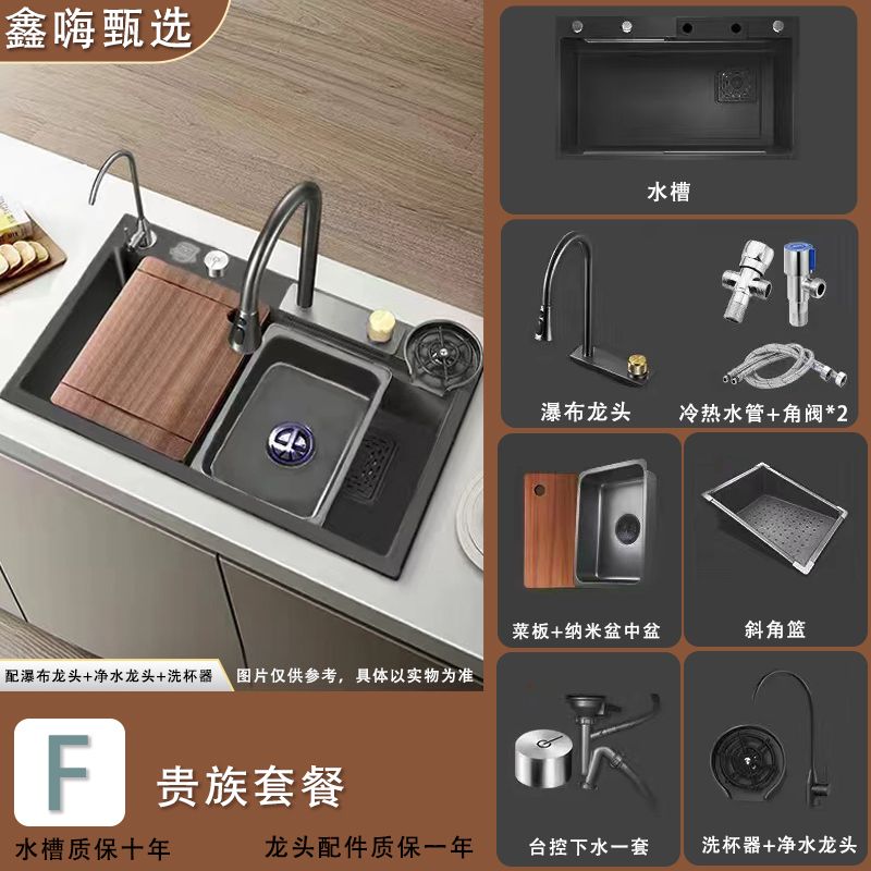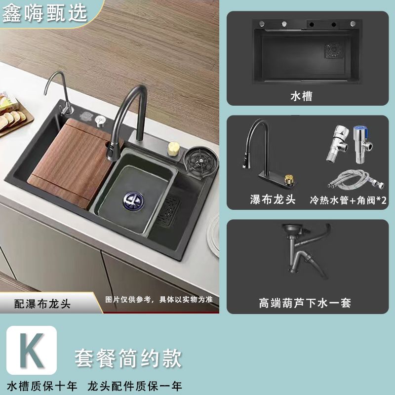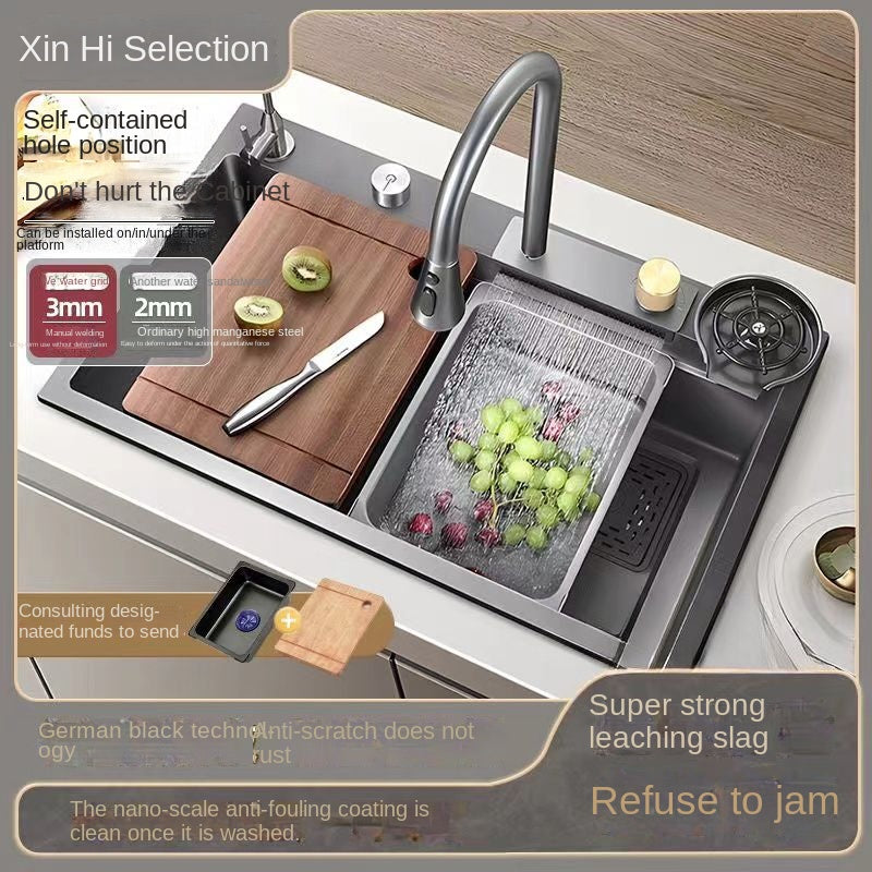 [Xin Hi] 4mm Feiyu Waterfall Large Single Sink 304 Stainless Steel Thickened Vegetable Washing Bowl Kitchen Household Scullery