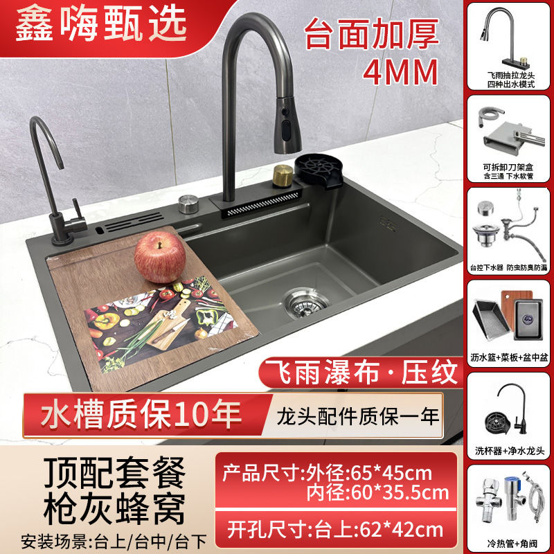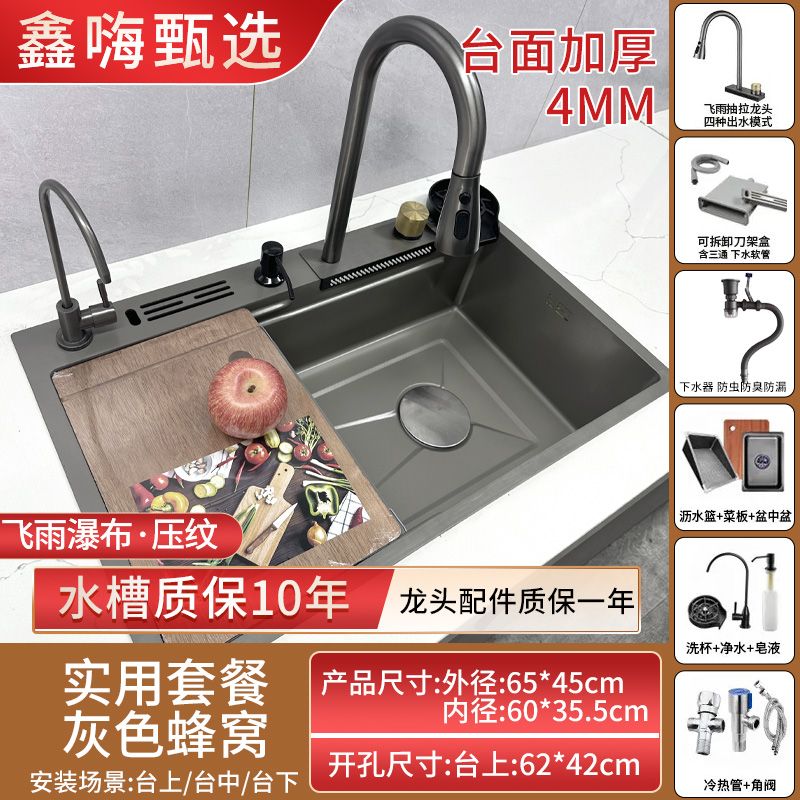 Xinhi Kitchen 4mm Thickened Honeycomb Nano Washing Basin Large Single Sink 304 Stainless Steel Scullery Household Vegetable Washing Sink