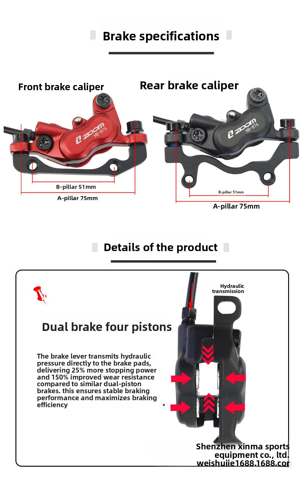 ZOOMHB876 Four-Piston Oil Brake Mountain Bike Front and Rear Oil Disc Brake Pads Disc Bilateral Brake Hydraulic Brake