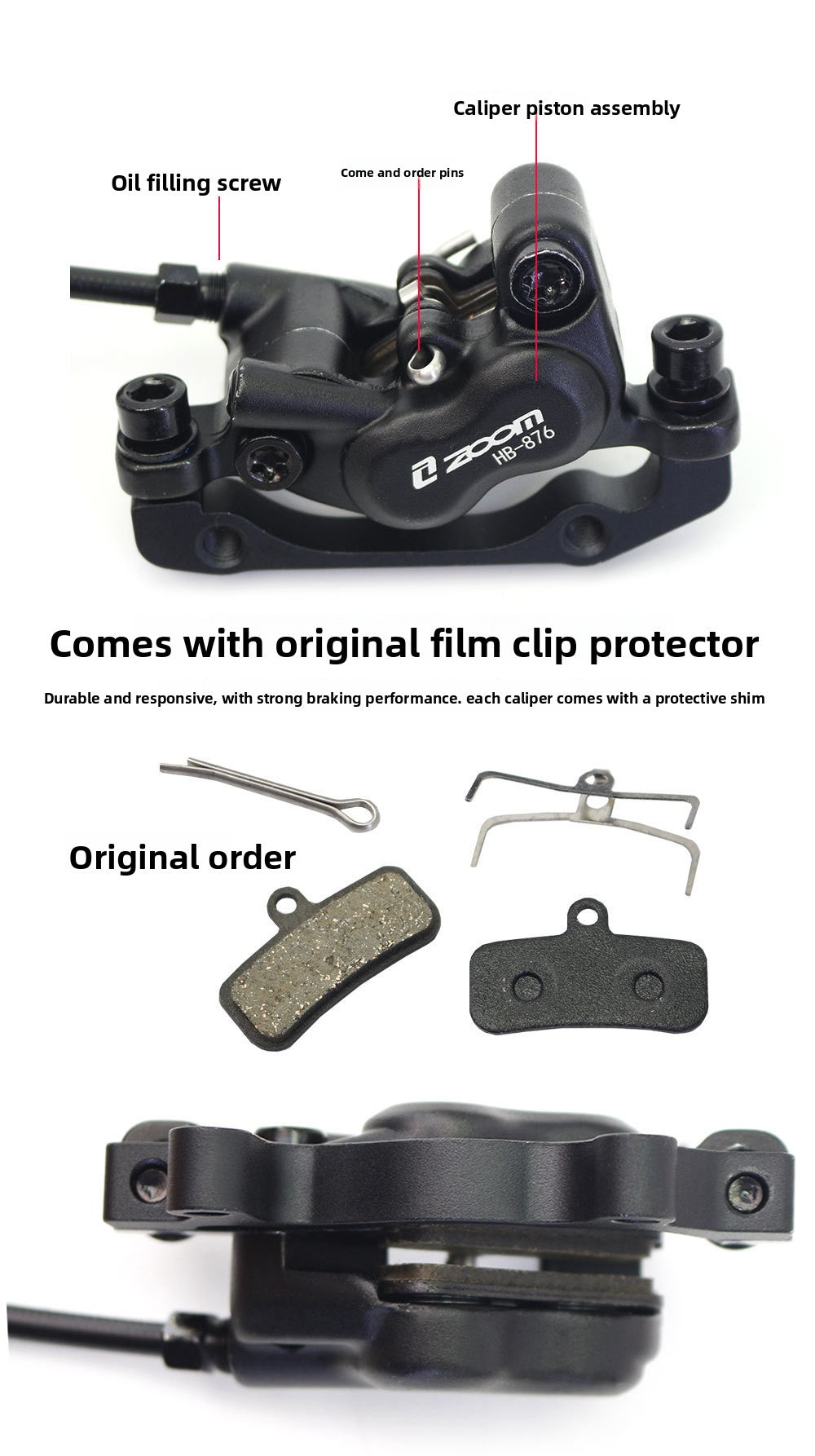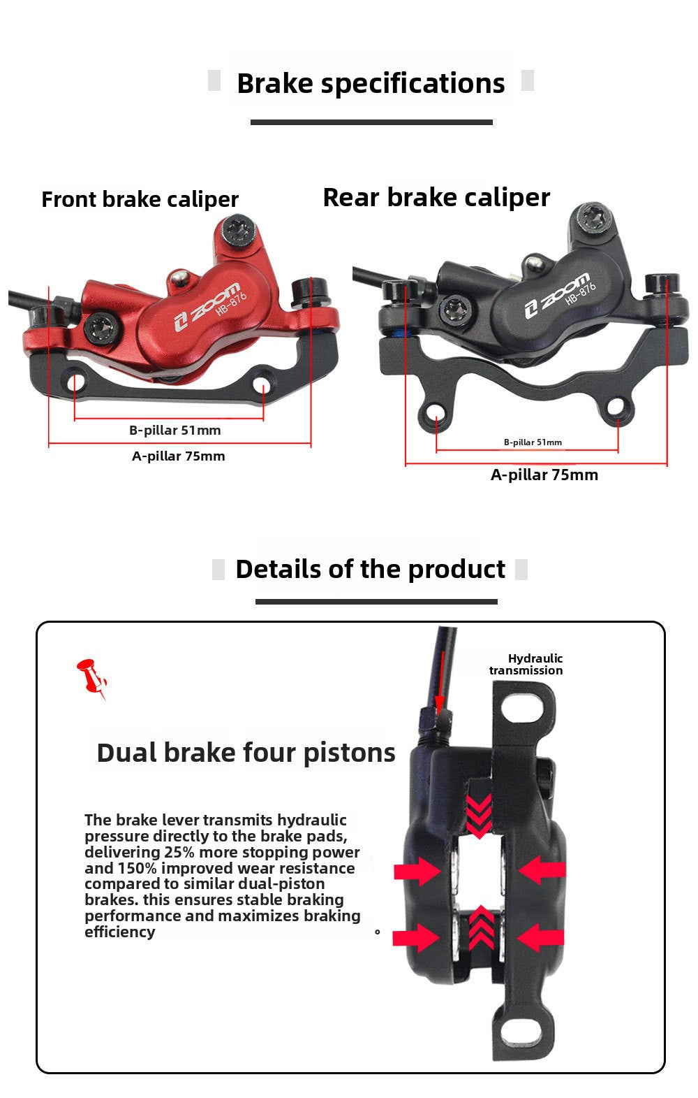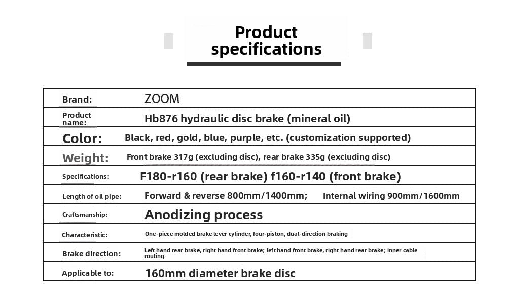 ZOOMHB876 Four-Piston Oil Brake Mountain Bike Front and Rear Oil Disc Brake Pads Disc Bilateral Brake Hydraulic Brake